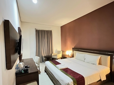 Begitu membuka pintu kamar, wow! Ukuran standar bintang 4, tapi terasa lebih luas dari hotel budget yang sempit. Tidak ada rasa sesak; ruang gerak bebas, dengan desain minimalis yang elegan. Bed king-size mengundang, dan jendela besar membiarkan cahaya alami masuk. Pilih dari tipe Superior untuk kenyamanan dasar, Deluxe untuk ruang ekstra, atau Executive untuk kemewahan total—semua dari 105 kamar pilihan kami, dirancang nyaman untuk keluarga dengan anak-anak.